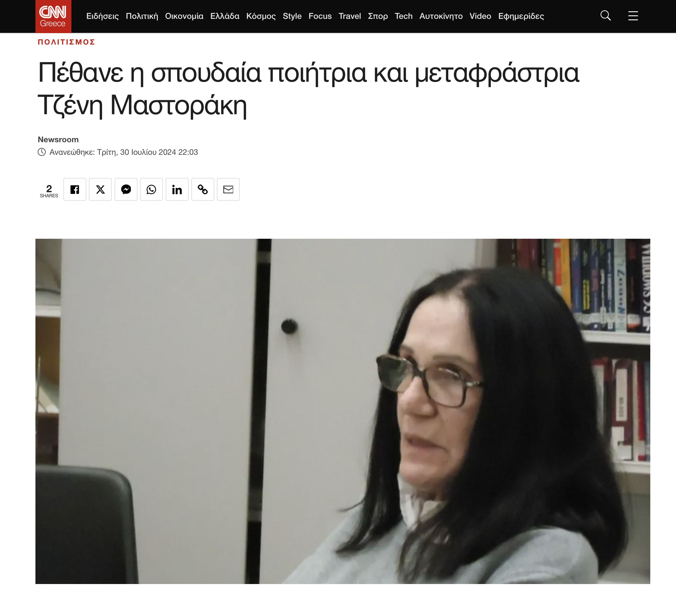 Έφυγε από τη ζωή η πολυβραβευμένη ποιήτρια και μεταφράστρια Τζένη Μαστοράκη