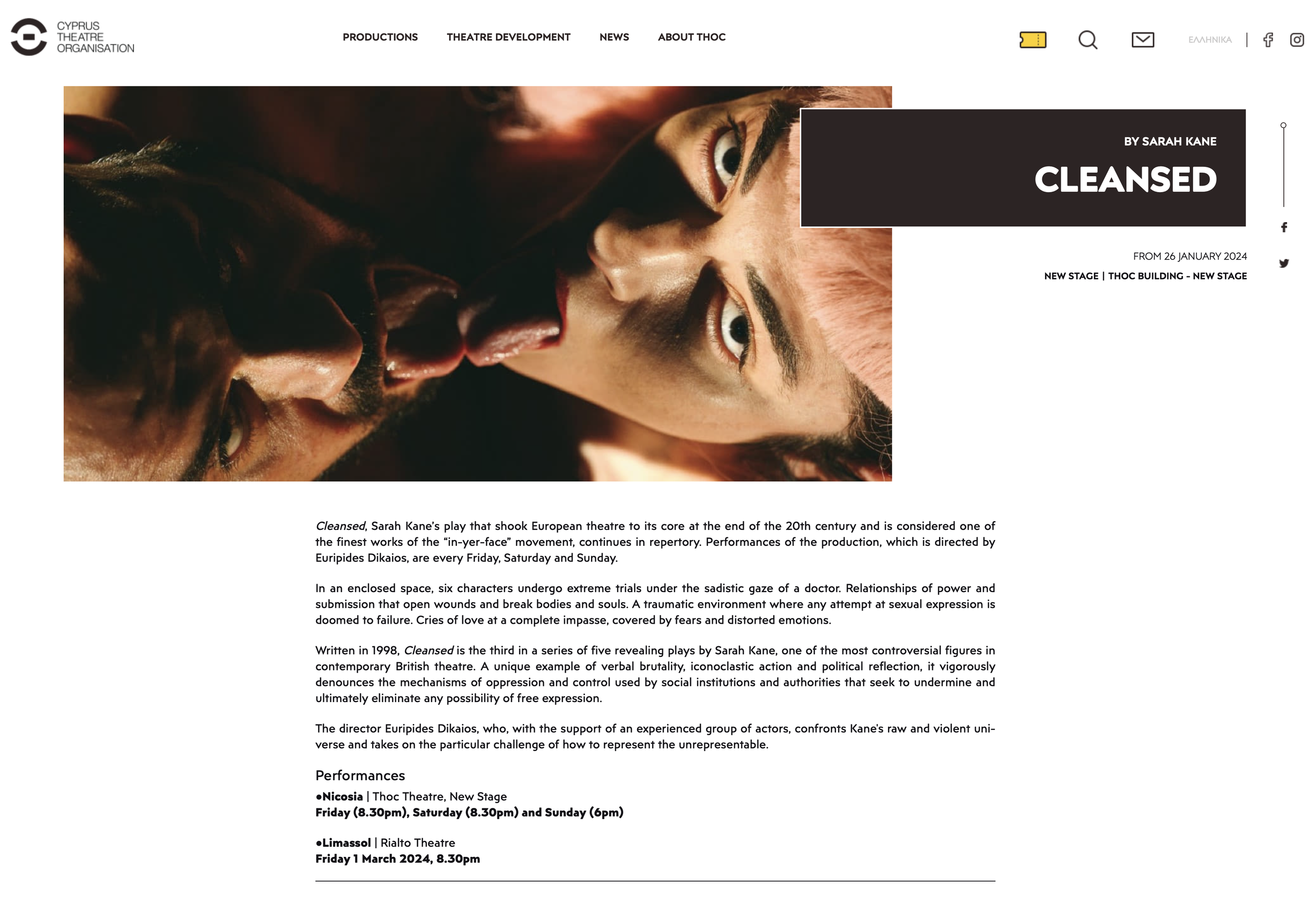 Sarah Kane, Cleansed / Καθαροί πια 2000